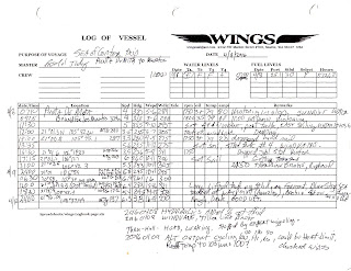 This blog contains the actual log entries for Wings. Here you will find the scanned log book pages for every trip we have taken, each day, each anchorage; everything.